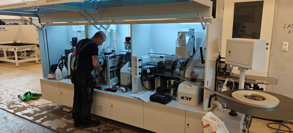 Tarkistuspyörösaha, reunalistoituskone ja CNC-työstökeskus otettiin vastaan ja koekäytettiin Jalasjärven näyttelytiloissa.