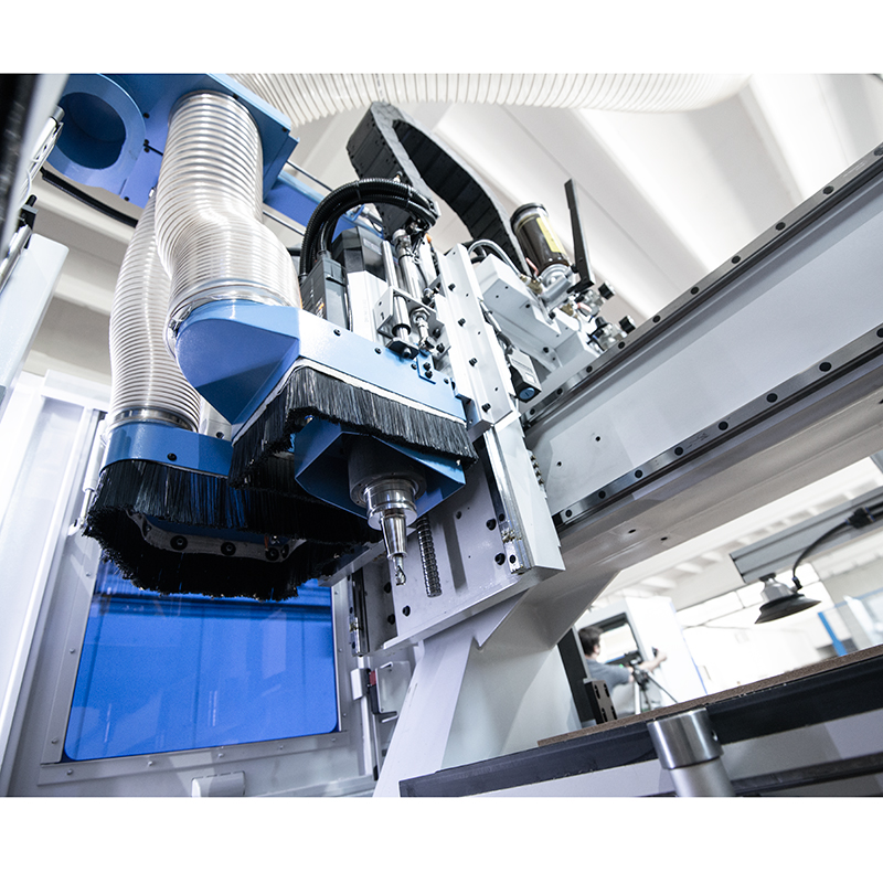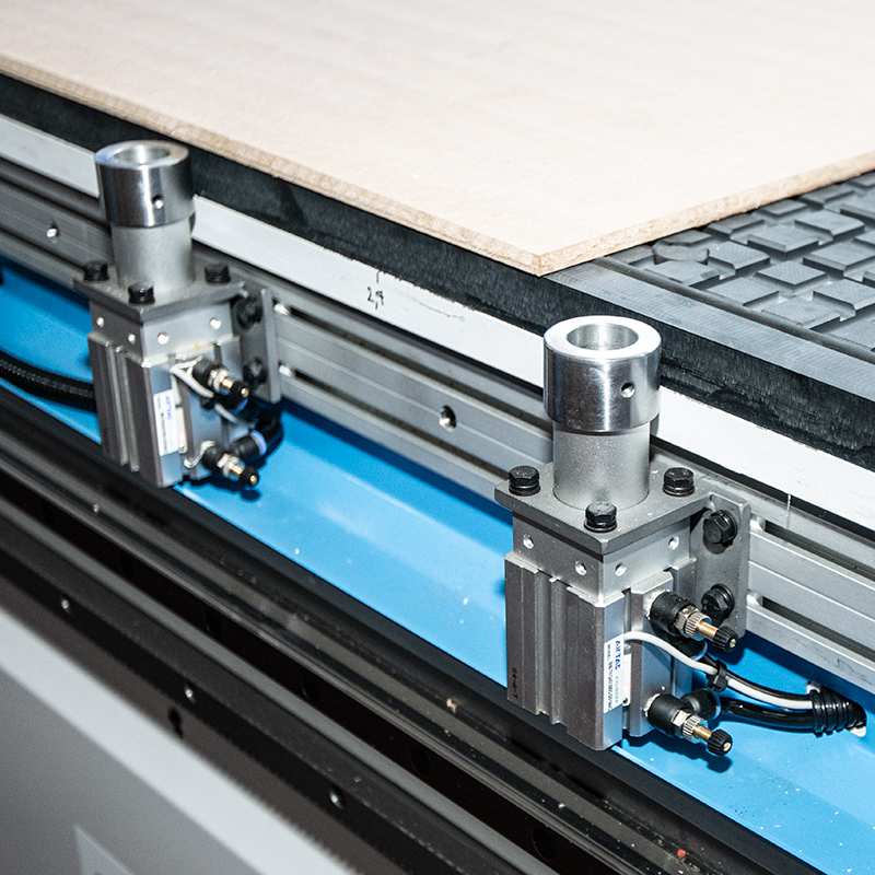 - Matriisityyppinen työpöytä: 6 alipainealuetta ja 2 Becker-alipainepumppua (500 m³/h) takaavat vakaan työstön myös pienille kappaleille.