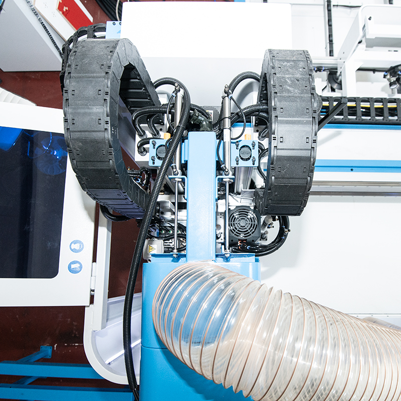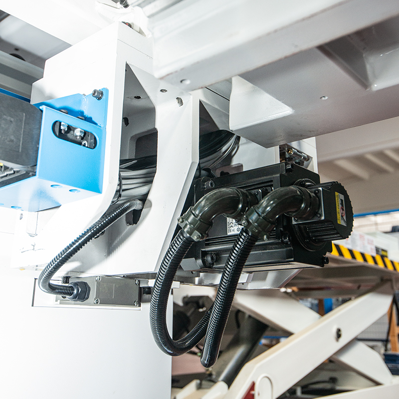 Sitä käyttää servomoottori, joka on asennettu suoraan koneen siltarakenteeseen ja liikkuu sen mukana.