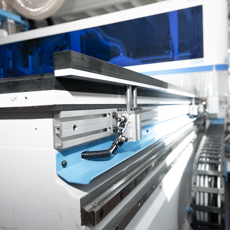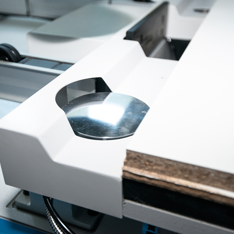 - Nollapisteet integroidulla ohjauskiskolla levyjen kohdistukseen ja aihioiden maksimaaliseen vakauteen siirron aikana työpöydältä kuljetinhihnalle