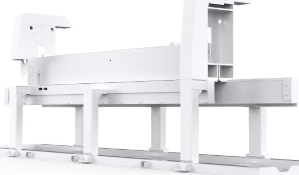 Koneen rungon suunnittelussa on huomioitu suurimmat sallittavat kuormitukset sekä rakenteen vaatimukset. Hitsattu runko on karkaistu materiaalin sisäisten jännitteiden poistamiseksi. Koneistus suoritetaan vasta tämän jälkeen viisiakselisella metallintyöstökoneella, jolla työstetään kaikki tasopinnat komponenttien asennusta varten.